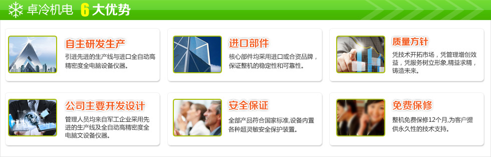 • 深圳市卓冷機(jī)電設(shè)備有限公司是集研發(fā)、設(shè)計(jì)、制造、銷(xiāo)售,安裝為一體的綜合性公司,專(zhuān)業(yè)生產(chǎn)冷凍和空調(diào)設(shè)備及安裝。經(jīng)過(guò)十三年的發(fā)展,公司從無(wú)到有,從小到大,已經(jīng)具備雄厚的制冷技術(shù)、并擁有現(xiàn)代化的生產(chǎn)線(xiàn)和檢測(cè)設(shè)備,以生產(chǎn)高質(zhì)量的冷凍空調(diào)設(shè)備和完善的售后服務(wù)贏得了國(guó)內(nèi)廣大客戶(hù)和經(jīng)銷(xiāo)商的信賴(lài)。